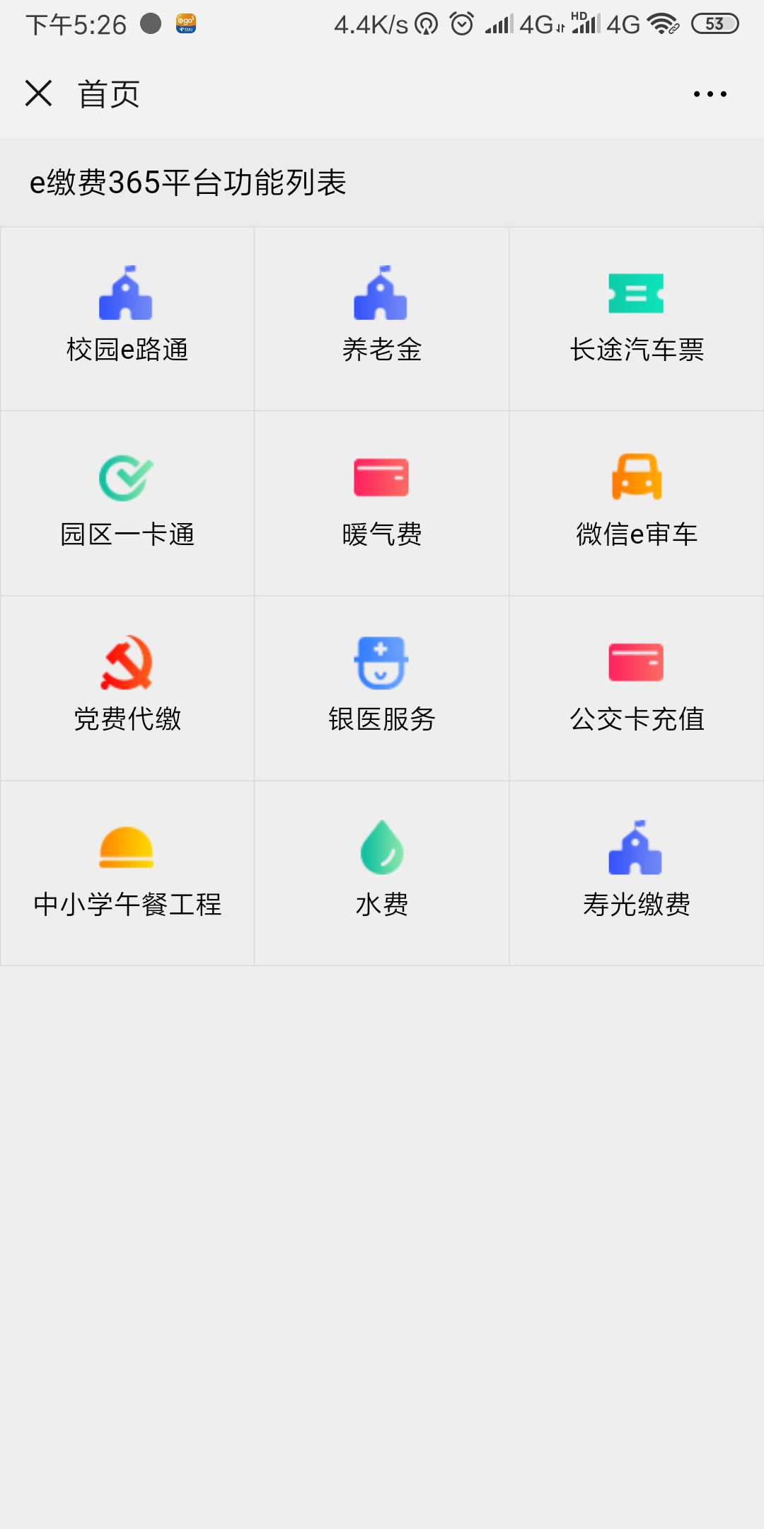 图1 1、扫描成功后,点击【业务办理】,选择e缴费365,随后选择校园e路通,页面如图1所示,进入下一页菜单,再如图2 所示:选择【缴费】菜单, 【城市】下拉列表中选择【泰安】,【单位】下拉列表中选择【米兰体育·(中国)网站首页】,输入编号(学生身份证号)、输入姓名,点击【查询】。